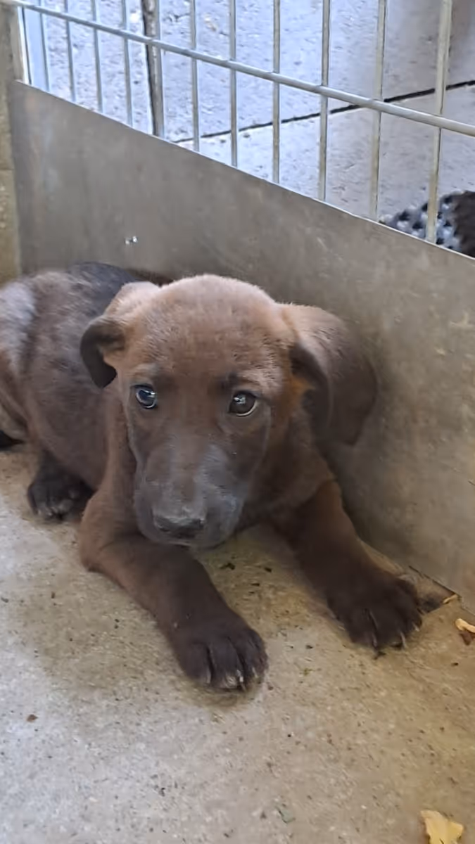 Biru a csöngei szaporítós horrortanya másik “részlegéből” érkezett hozzánk. Mondhatjuk, hogy egyenesen a pokolból. Aki látott képeket, beszámolót tudja mire gondolunk. A kutyák a saját ürülékükben, vagy egyedül bezárva vagy falkában éheztek, csont soványak, fizikailag rossz állapotban voltak. Minden kutya, aki hozzánk került alul szocializált, az emberi érintést nem ismeri, retteg az embertől. Iszonyat hosszú út áll előttük, hogy egyszer többé-kevésbé normális életet éljenek. Mentálisan Biru van a legrosszabb állapotban. Nem kommunikál, ha erőltetjük azonnal félelem agresszív lesz. Nem odakap, kajakra harap. Az emberi érintést nem viseli, menekül előlünk. Ha hosszabb ideig bent vagyunk nála a jutit felveszi a közelünkből. Az udvarra kimerészkedik, kíváncsian járkál egyre nagyobb területen. Biruhoz extra türelem kell, olyan befogadó, aki nem bánja ha sokáig, akár hónapokig sem érintheti meg. Egyenlőre csak ideiglenes befogadóhoz költözhet maradási opcióval, míg bűnjel státuszát feloldják.