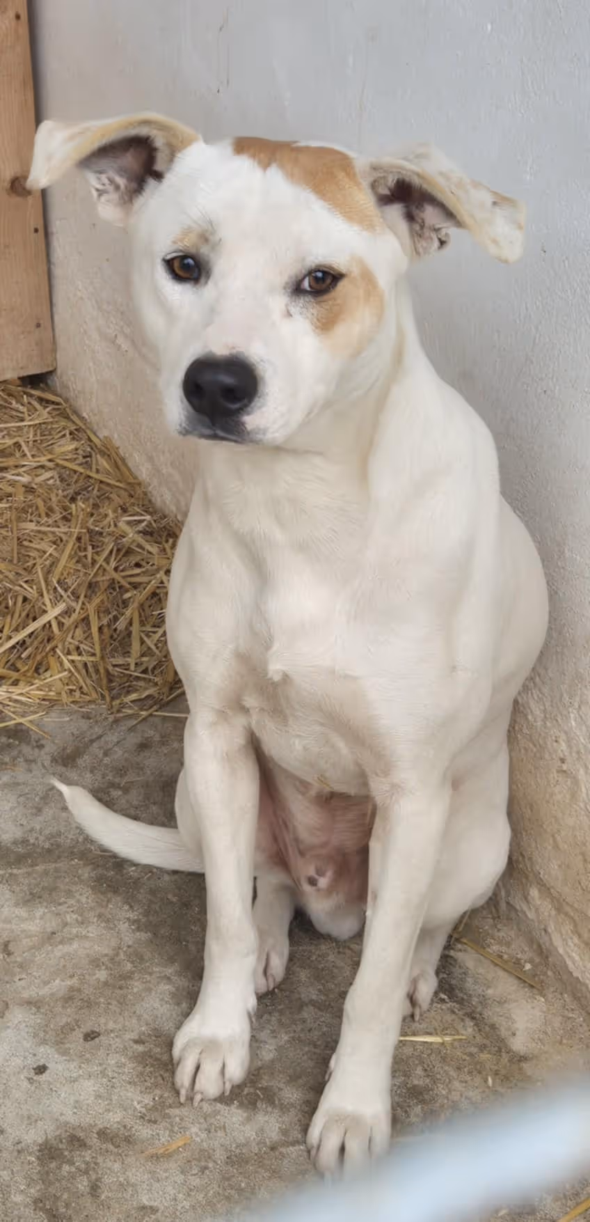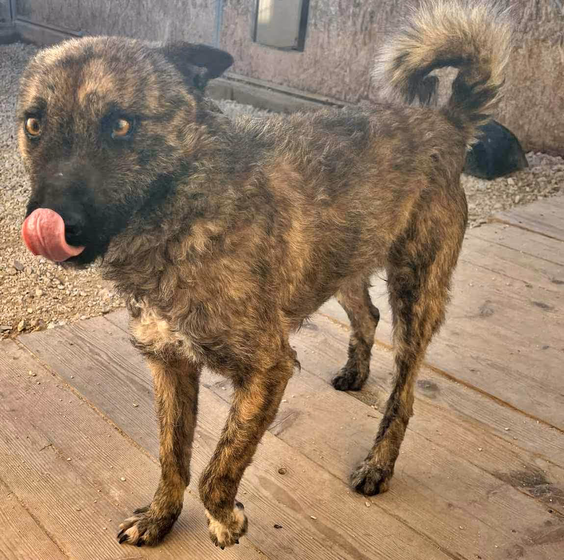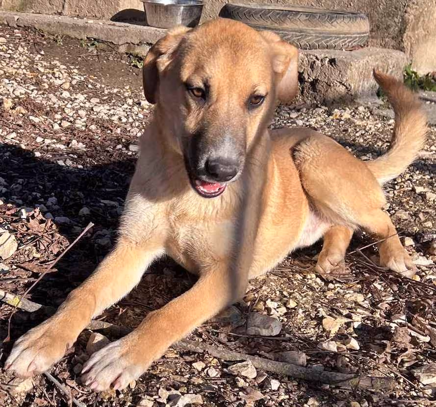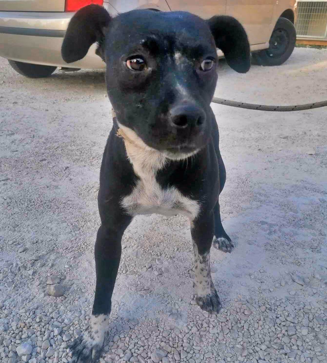 1-2 év körüli ivartalan szuka, nagyon kedves, bájos, bújós kutyus. Más kutyával, emberrel szuperül kijön. Közepes termetű.