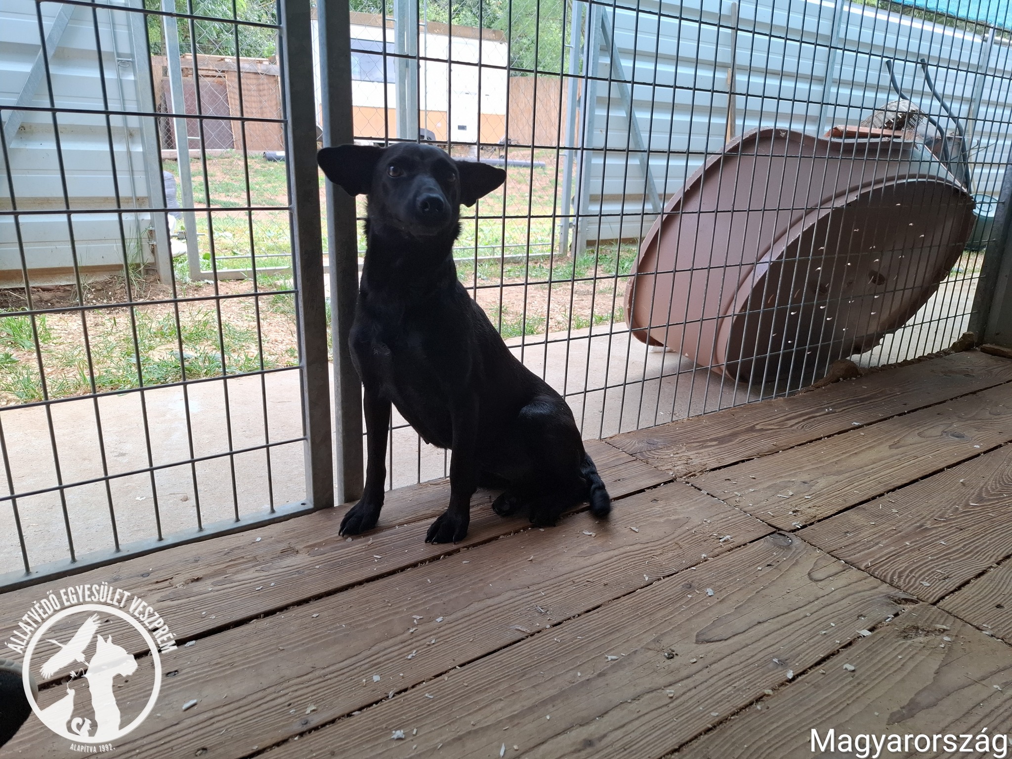kb. 1 éves fekete kislány érkezése napján. Rettentően félt, gyakorlatilag lefagyott.